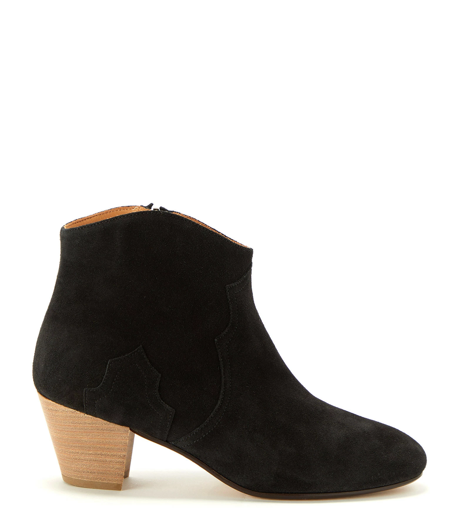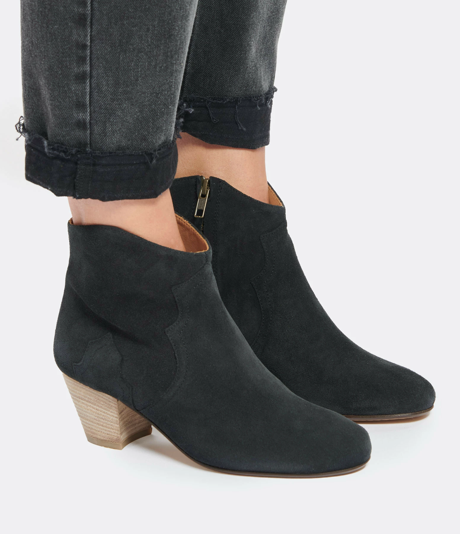 ISABEL MARANT Bottines Dicker Veau Velours Noir Délavé